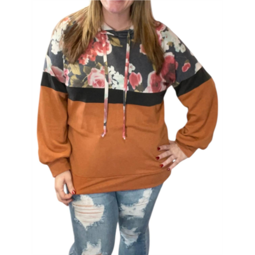 [US] Honeyme floral color block hoodie in orange