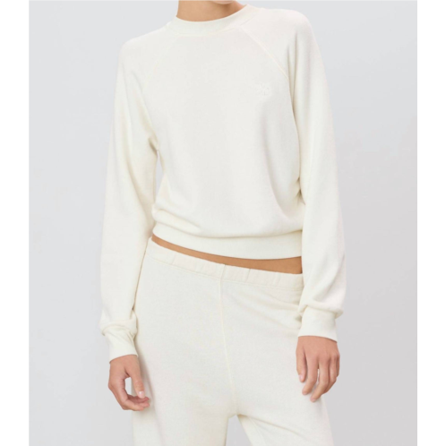 Cozy fabric, impeccable design - Meet the sweatshirt that you'll never want to take off.The ETERNE Shrunken Raglan Sweatshirt, in a timeless cream shade, is a minimalist staple for Fall festivities. Crafted from a soft French Terry fabric, it offers long sleeves and a slightly cropped length, perfect for a relaxed yet chic silhouette. Its composition of 54% Cotton and 46% Rayon ensures comfort, with a convenient pull-on closure. Care for this sweatshirt easily by machine washing cold, tumble drying low, and using a cool iron if necessary.