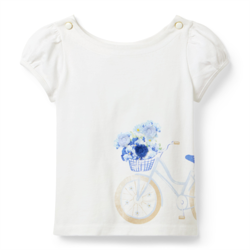 - Our bicycle tee has all the little details to lovefrom the screenprinted graphic to the applique flower details and puff sleeves too.