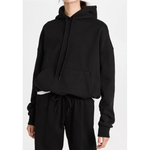 Cooler temps call for layering and we love this adorable sweatshirt for all the obvious reasons.The WARDROBE.NYC Hooded Top in black offers the perfect blend of comfort and style with its heavyweight French terry construction and casual long sleeves. This solid sweatshirt features a practical drawstring hood and a convenient front pouch pocket, complemented by ribbed trim for a snug fit. Made from 100% cotton in Portugal, it ensures quality and durability, while its pull-on design provides ease of wear. Designed with a garment length of 22.75 inches, this piece is machine washable for effortless care.