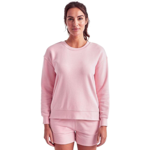8 oz./yd., 60/40 cotton/recycled polyester. Heather Grey - 90/10 cotton/viscose. Feminine fit. Zip detail to sides of sweatshirt. Tear away label. Recycled polyester from post-consumer plastic.