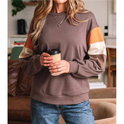 Cooler temps call for layering and we love this adorable sweatshirt for all the obvious reasons.Experience effortless style with the Piper Pullover Casual Sweatshirt by Threaded Pear, featuring a dark khaki color and bold stripe pattern. This versatile piece showcases long sleeves and a cozy crewneck, perfect for spring outings or relaxed New Year's Eve gatherings. Crafted with a pull-on closure for easy wear, it effortlessly blends casual comfort with a trendy preppy vibe. Care - Machine wash and tumble dry for hassle-free maintenance.
