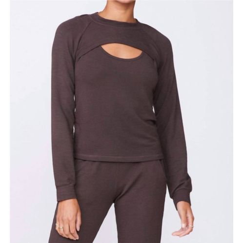 [US] MONROW womens peekaboo sweatshirt in cocoa