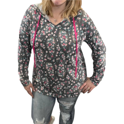 Whether you're running around town or lounging at home, this sweatshirt works for both.V-neckline. Attached hood with drawstring. Floral print. 100% Cotton. Machine wash cold.