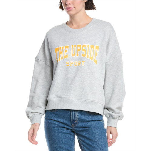 Introducing the 'THE UPSIDE Harbor Paloma Sweatshirt' for women - a stylish and comfortable addition to your wardrobe. Made from 100% organic cotton, this sweatshirt features a trendy grey marble color/pattern with ribbed trim and a crewneck design. The slip-on styling makes it easy to wear, and the approximate length of 23 inches from shoulder to hem ensures a flattering fit. The model is 5'12 and is wearing a size small. Machine washable and imported, this sweatshirt is a must-have for your casual everyday looks.