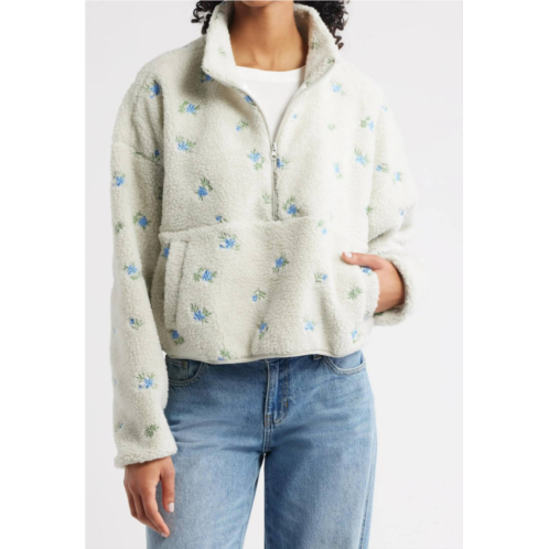 [US] The Happy Camp3r elle periwinkle petals fleece half zip pullover in soft gray