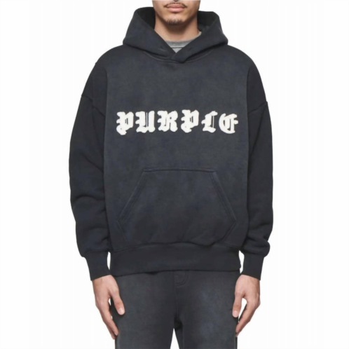 Cozy fabric, impeccable design - Meet the sweatshirt that you'll never want to take off.Elevate your streetwear collection with the Purple Brand Gothic Applique Hoodie, featuring long sleeves and crafted from 100% cotton. Designed for an oversized fit, this black hoodie measures 28.25 inches in length and showcases Gothic logo lettering across the chest. It boasts a faded wash, a large kangaroo pocket, ribbed cuffs and hem, and a pull-on closure. Perfect for urban adventures, this piece exemplifies travel-friendly style.