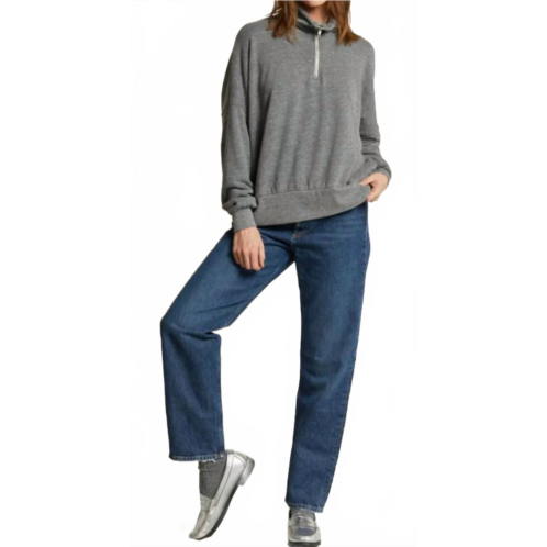 Whether you're running around town or lounging at home, this sweatshirt works for both.A little preppy and a little bit of classic, this half zip pullover will be your most coveted piece for both lounging and whatever else the day brings for you. This has a relaxed and loose fit and full length. An easy yet elevated sweatshirt to pair with every classic pair of denim you own.100% luxe fluff cotton fleece35% poly, 35% cotton, 30% viscosegentle machine wash cold. do not bleach. tumble dry low. warm iron if needed. do not spot treat, or add softenerThoughtfully produced in california