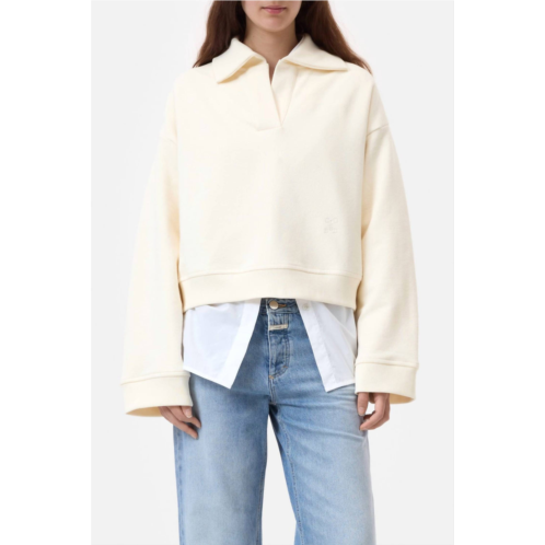 Cooler temps call for layering and we love this adorable sweatshirt for all the obvious reasons.Introducing the Open Polo Sweatshirt by CLOSED, a stylish choice for the upcoming school season in a sophisticated dune beige. It features long sleeves and a classic collared neckline, crafted for a preppy aesthetic. Closure - Pull on. Care - Machine wash and tumble dry for easy maintenance.