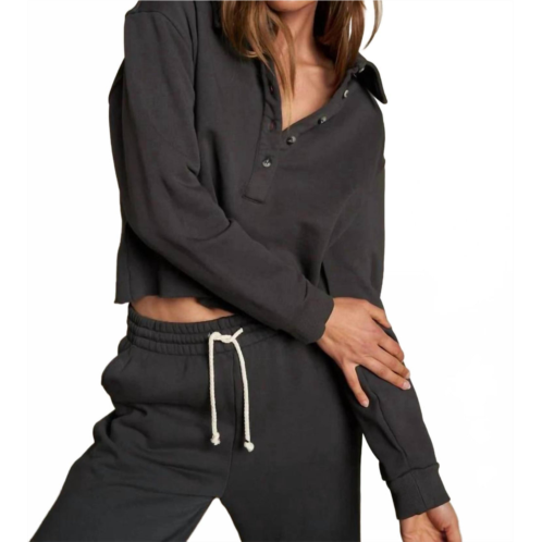 Cooler temps call for layering and we love this adorable sweatshirt for all the obvious reasons.The Vinny Heavier Fleece Sweatshirt by perfectwhitetee in Vintage Black is your ideal choice for a cozy yet stylish layer. Featuring three-quarter sleeves and a button closure, this piece provides warmth without unnecessary bulk. Its solid vintage black color offers versatility, easily pairing with any outfit. Crafted for women, this minimalist sweatshirt is perfect for spring travel occasions.