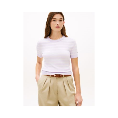 Tommy Hilfiger women's sweater. Our short-sleeve striped sweater is made from a viscose-blend knit for a soft, lightweight feel. Comfortable and versatile, it is a go-to piece for transitional weather days.