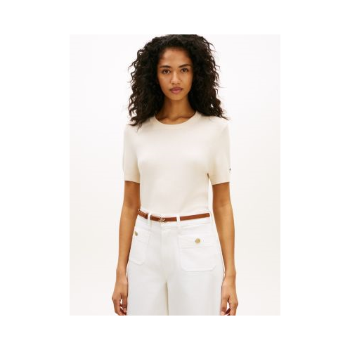 Tommy Hilfiger women's sweater. Our short-sleeve sweater is made from a viscose-blend knit for a soft, lightweight feel. Comfortable and versatile, it is a go-to piece for transitional weather days.