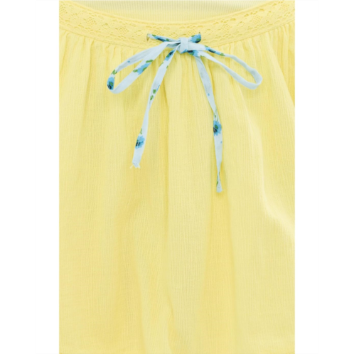 - Bold and confident, the Free People Lady Tulip Mini Skirt hugs just right while keeping things comfortable. Made for nights out, statement looks, and fearless fashion choices, this skirt features a layered bohemian design with delicate eyelet embroidery at the hem, a crochet-lace waistband, and a dainty blue-patterned drawstring tie.