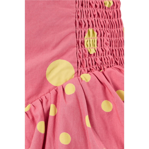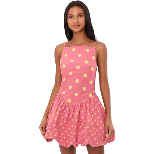 - The Free People Misty Mini adds adorable charm while keeping comfort at the heart of the design. It features straight neckline, sleeveless style with thin adjustable spaghetti shoulder straps, fit-and-flare silhouette, and above the knee length silhouette. This polka dot dress has smooth, structured front panel, clean seam finish, soft volume for movement, and slightly gathered structure creating flare.