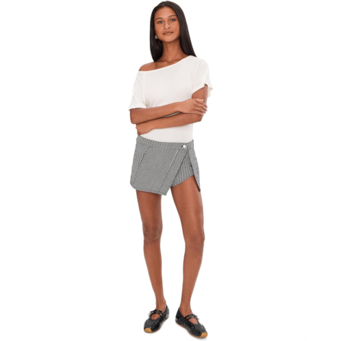 - The Free People Georgie Gingham Micro Skort is designed with a wrap-front silhouette, giving it the look of a skirt with the comfort of built-in shorts. This wrap detail is secured with a button closure, which adds both function and a touch of charm to the gingham pattern. The micro length keeps it flirty and modern.