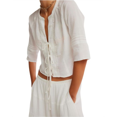 - Effortlessly charming, this vintage-inspired Free People Bright Side Set features a relaxed, flowy fit with delicate embroidery that adds just the right hint of detail. This set comes with a top featuring ties at front, three-quarter length sleeves, and cropped silhouette. The bottom features high-rise style, tiered design, and elasticized waistband.