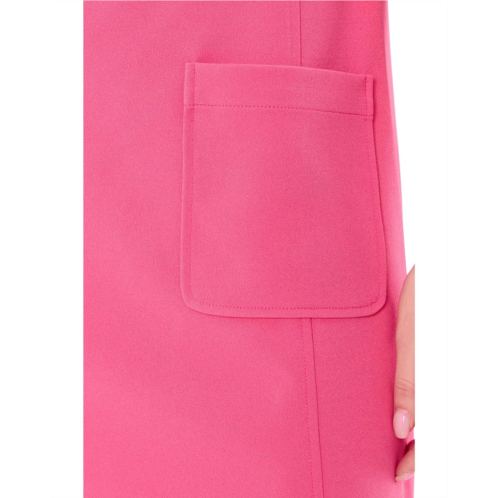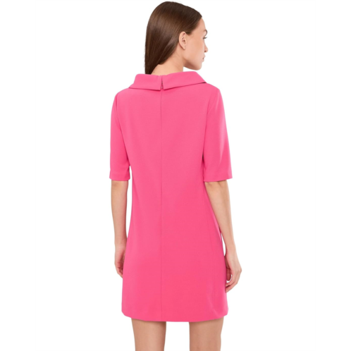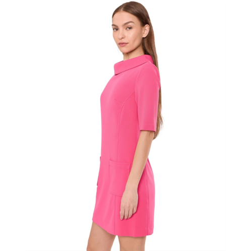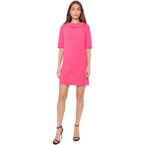 - Experience style without compromise. Made with soft, breathable fabric, the Trina Turk Drape Neck Straight Fit Dress provides all-day comfort while maintaining a flattering shape. Its minimalistic design allows you to accessorize or wear as-is for an effortlessly chic look. This dress features elbow length sleeves with a folded cowl neckline and two front patch pockets, in a stretch crepe fabric.