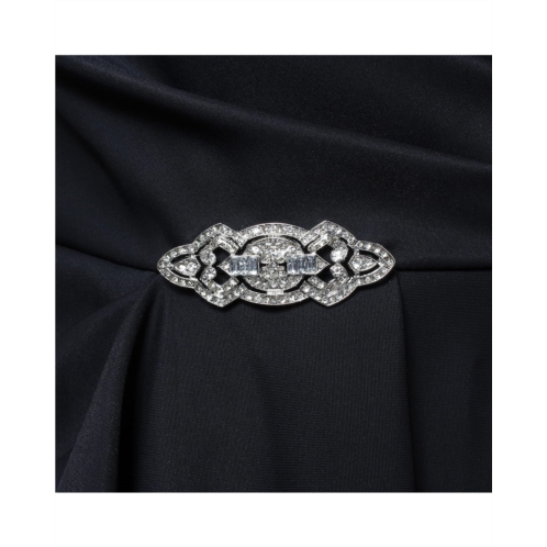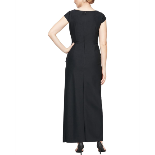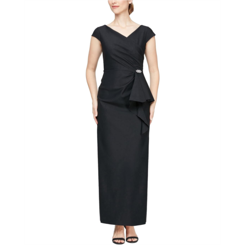 [US] Womens Alex Evenings Long Stretch Scuba Dress with Front Cascade Detail and Surplice Neckline with Cap Sleeves