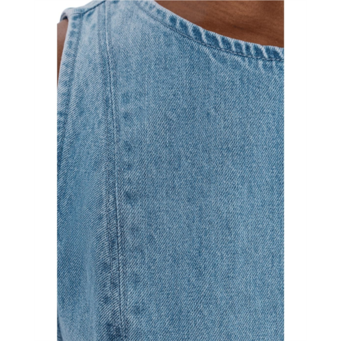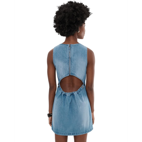 - The Free People Atlas Denim Mini is the perfect blend of cool and classic, this totally timeless mini dress is featured in jewel neckline, sleeveless style, exposed back-zippered closure, mini length, and classic silhouette.