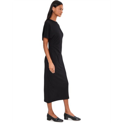 - The Vince Short Sleeve Side Ruche Dress is designed to move seamlessly from day to night with understated elegance. Crafted from fluid matte jersey, this midi-length silhouette delivers a refined, dressier feel while maintaining all-day comfort. The classic crew neck and relaxed dolman sleeves create a clean, contemporary profile, while the pull-on design keeps things easy and fuss-free. Gentle side ruching at the waist subtly enhances your natural curves, sculpting a soft hourglass shape without feeling restrictive. Falling to a flattering midi length, this dress offers just the right balance of sophistication and ease.