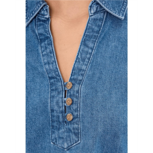 - Soft yet structured, this Tommy Bahama Denim 3/4 Sleeve Short Dress offers relaxed comfort with a flattering silhouette-perfect for weekends and casual outings. This dress features collared split neckline with three button detailing, adjustable self fabric belt, above the knee length silhouette, and pull-on style.