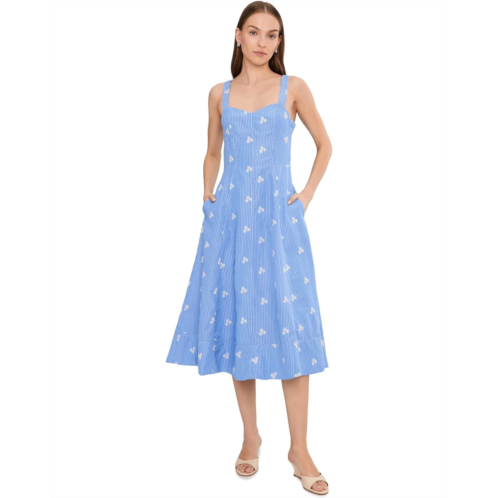 - Gracefully falling between the knee and ankle, this Avec Les Filles Sleeveless Sweetheart Midi Dress offers the perfect balance of modesty and modern style. Designed with a flattering silhouette and comfortable fit, it’s ideal for day-to-night dressing. Featuring floral embroidered sweetheart neckline, sleeveless style, classic fit, back smocked detailing with zippered closure.