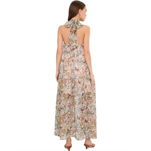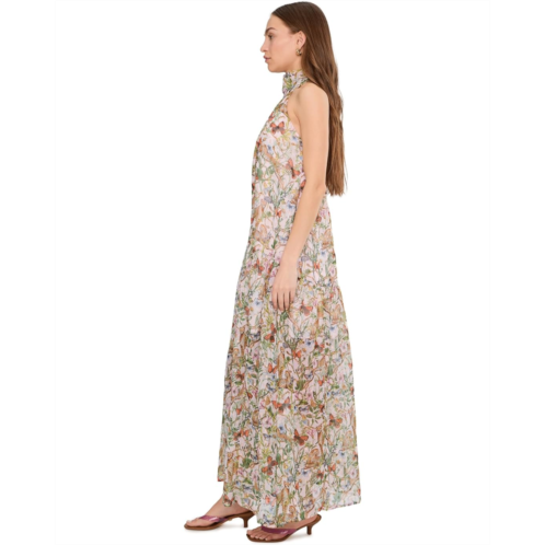 - Redefine your look wearing the Avec Les Filles Drop Waist High Collar Sleeveless Maxi Dress. The pull-on style dress features a halter neck with back-tie closure, drop waist, allover floral print, and a tiered skirt that is intended to hit at the ankles.