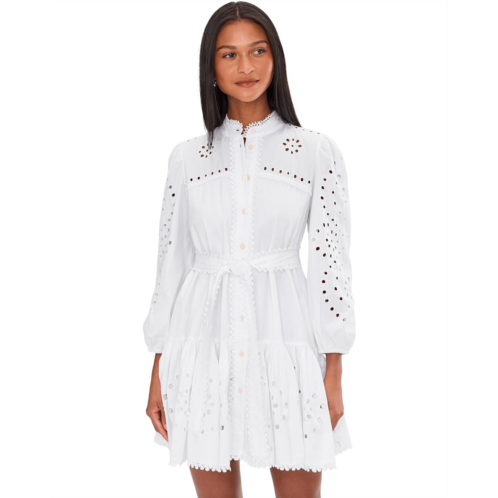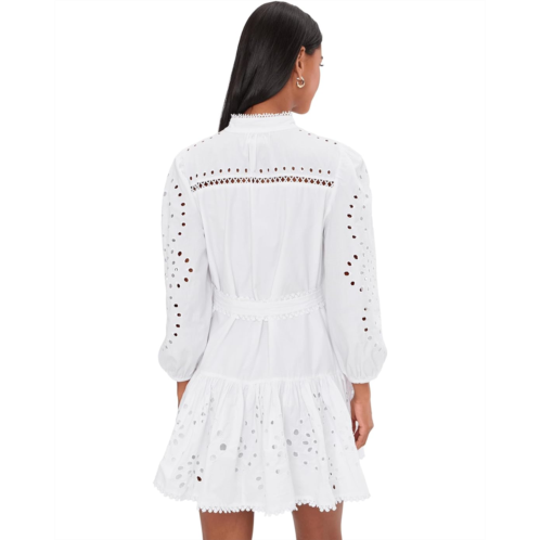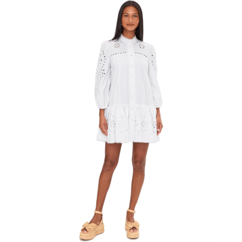 [US] Womens Avec Les Filles Long Sleeve Button-Down Eyelet Shirt Dress