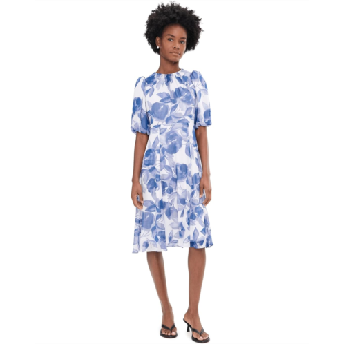 [US] Womens Calvin Klein Puff Sleeve Chiffon Midi