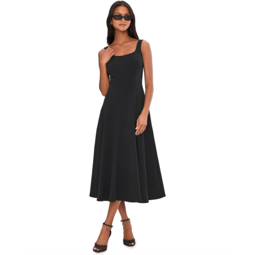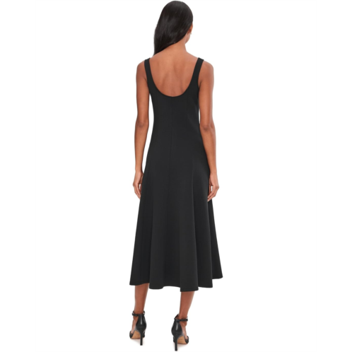 - The Vince Square Neck Seamed Dress is crafted from a double-knit cotton blend with a subtle textural pique finish. The seams have been strategically placed to softly follow the form, from the slim bodice to the gently flared skirt. It is styled with a square neckline and a pleated hem. This sleeveless, midi dress is a great choice for formal events and parties.