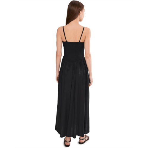 - The L*Space Misha Midi dress is made for more. It has a longline and an allover smocked bodice for an elongating, flattering, and flexible fit. Made from rayon, it is designed with a square neckline and a pleated hem. With adjustable straps and a flowing maxi-length skirt, this midi dress is created for a soft, lightweight feel that moves with you.