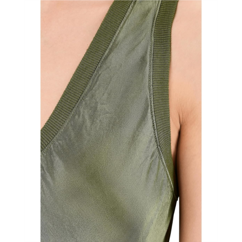 - Ride towards the urban wave of modernity wearing Michael Stars Randi V-Neck Midi Dress. It features a rib-knit V-neckline, sleeveless construction, and side splits designed in an A-line silhouette.