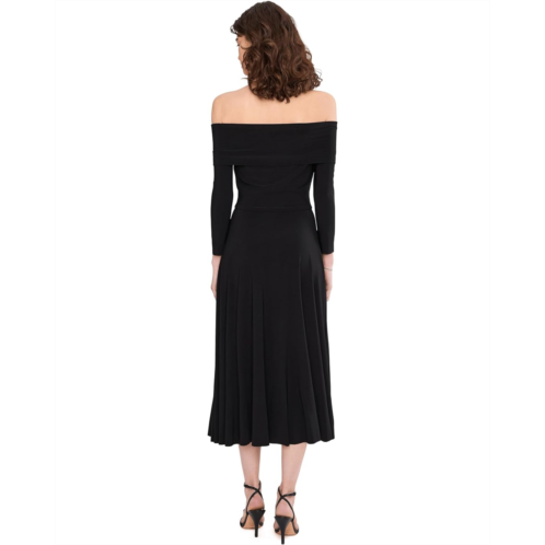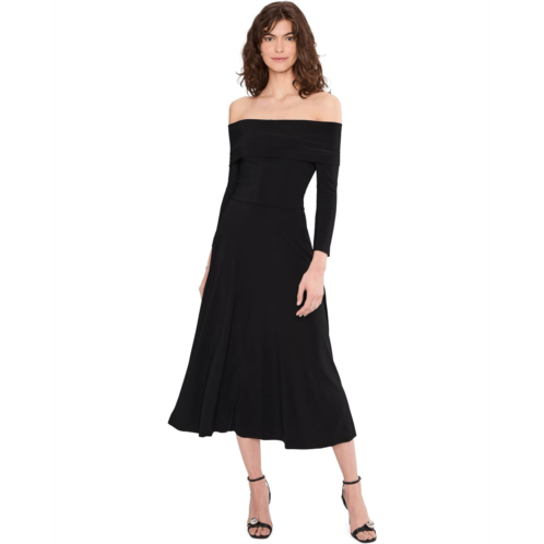 [US] Womens Norma Kamali 3/4 Sleeve Cowl Neck Flared Dress To Midcalf