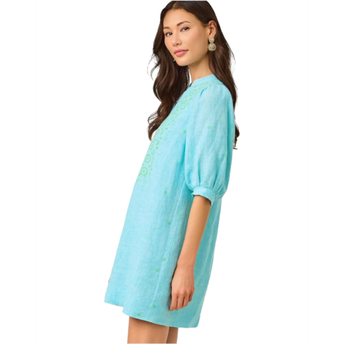 - Give your warm weather wardrobe a playful twist in the breezy Lilly Pulitzer Mialeigh Elbow Sleeve Linen dress. Featuring a pull-on style in an easy fit, stand collar, half placket, and elbow-length puff sleeves. Pair it with your favorite chic sandals to elevate your casual style.