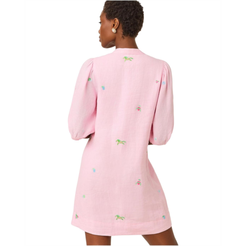 - Give your warm weather wardrobe a playful twist in the breezy Lilly Pulitzer Mialeigh Elbow Sleeve Linen dress. Featuring a pull-on style in an easy fit, stand collar, half placket, and elbow-length puff sleeves. Pair it with your favorite chic sandals to elevate your casual style.