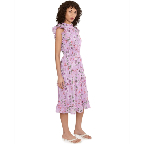 [US] Womens CeCe Flutter Sleeve Smocked Waist Midi Dress