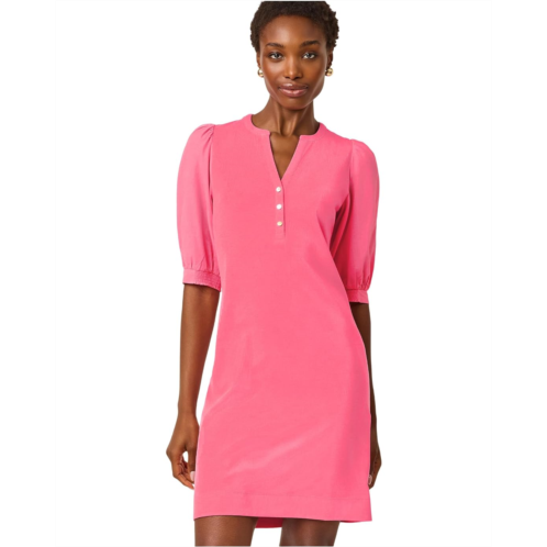 - The Lilly Pulitzer Ronson Dress is an easygoing style crafted in a straight fit popover silhouette. It features a crew notched neckline accented with buttons for added ease. The dress is detailed with elbow-length puffy sleeves that balance coverage with a breezy feel.