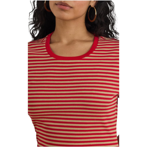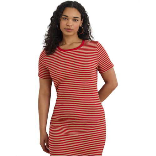 [US] POLO Ralph Lauren Womens Lauren Ralph Lauren Petite Striped Cotton-Blend Ribbed Tee Dress