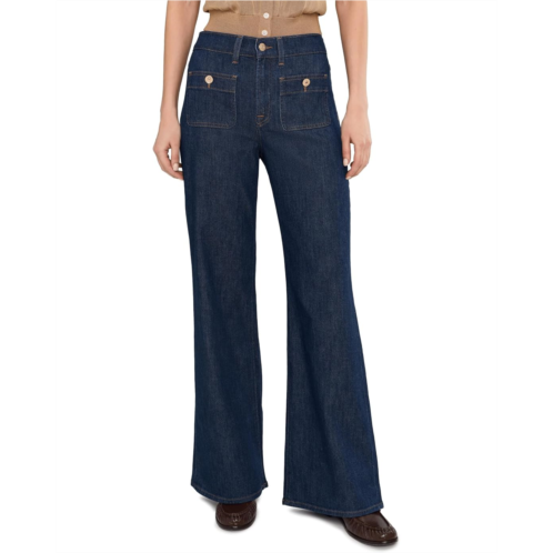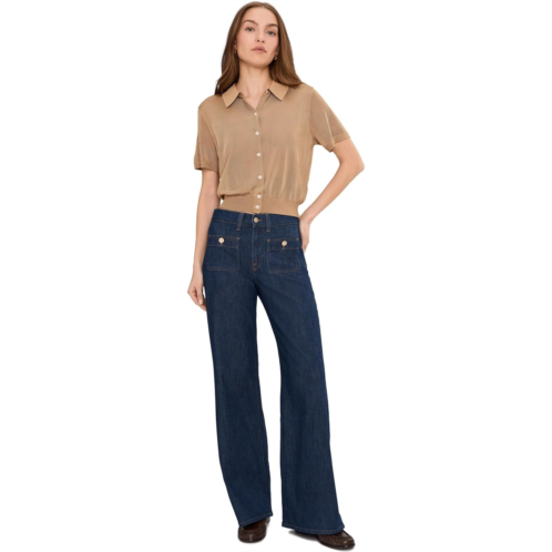 - Sculpted for the sidewalk: The 7 For All Mankind Lotta Tailorless in Halona. Designed with a flattering high-rise silhouette, this pair contours the waist and hugs the hips before flowing into an easy, full-length wide leg that elongates your frame with effortless grace. The zip-fly with button closure ensures a secure, streamlined fit, while the pull-on feel keeps styling simple and comfortable. Front patch pockets with button closures add a tailored, vintage-inspired touch, balanced by a clean back pocket for a sleek finish. Contrast stitching highlights the structure and craftsmanship, giving the denim a refined yet fashion-forward edge.