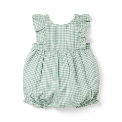 - Baby's first sunny days are squared away in classic gingham. Featuring ruffles and pintucks, our seersucker romper is an instant love.