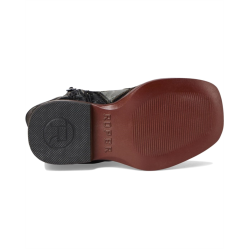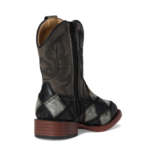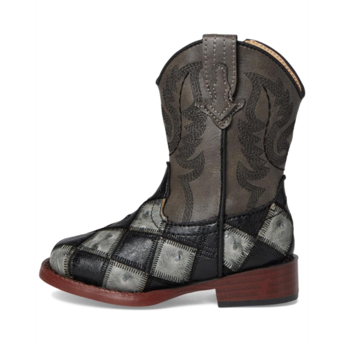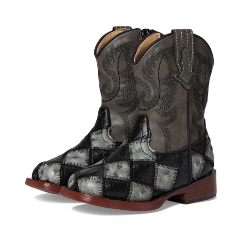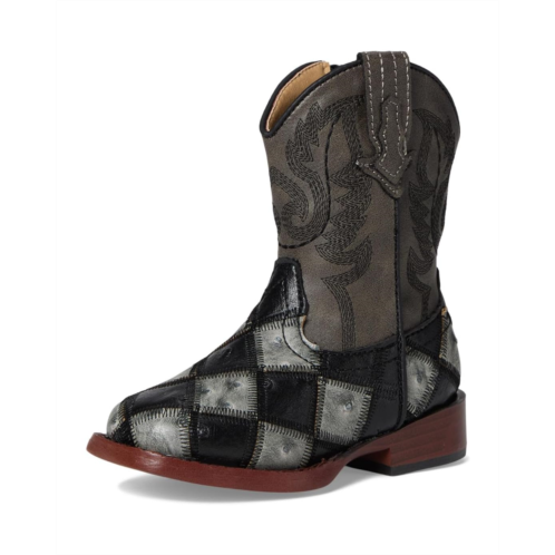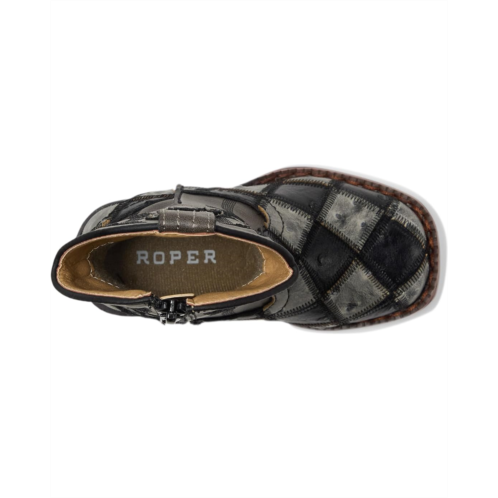 Everyone will check out her standout style in the charming Roper Kids Bird Blocks boots. These synthetic boots are crafted with a checkered print along the bottom and a distressed faux-leather shaft. Wing stitching displayed along the shaft.