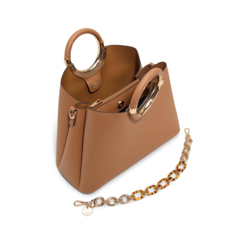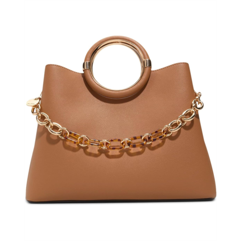 Stay organized in style with the structured ALDO Dovie satchel bag, featuring striking chain detailing and a sculptural handle design that instantly elevates any outfit, from casual denim to polished workwear. This solid satchel includes an unlined interior with two compartments separated by a magnetic closure, plus a central zip compartment for added security. Designed with double grab handles and a detachable chain strap, it offers versatile carry options for your day-to-night style.