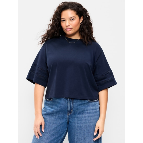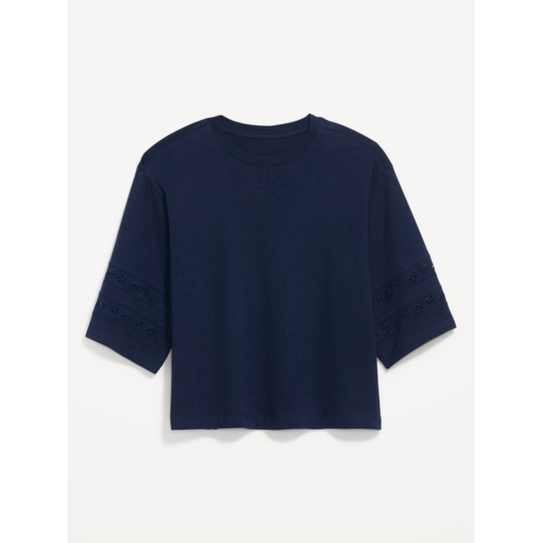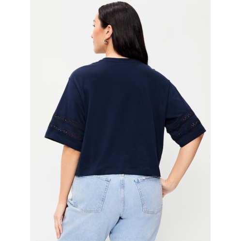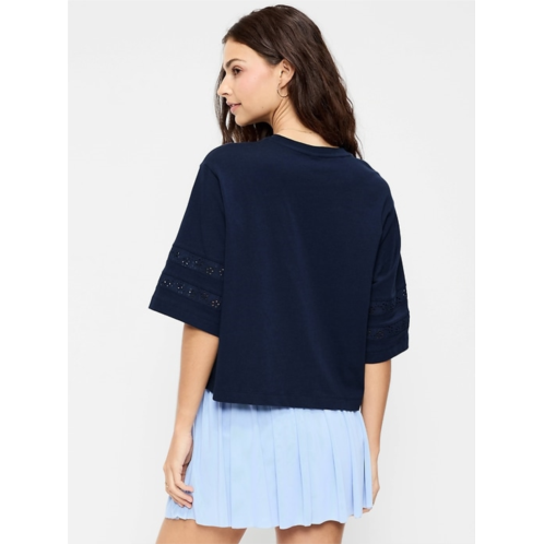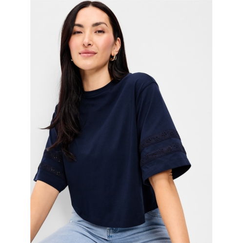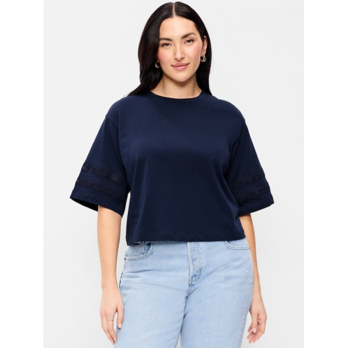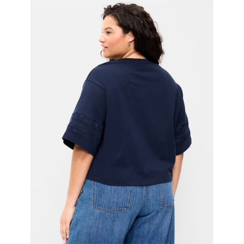 [US] OldNavy Vintage Crew-Neck Cropped Lace-Trim T-Shirt