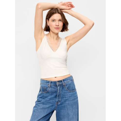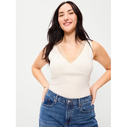 [US] OldNavy Sleeveless Lace-Trim V-Neck Ribbed Top