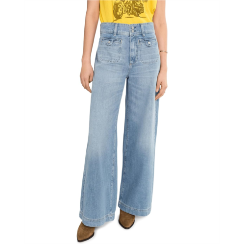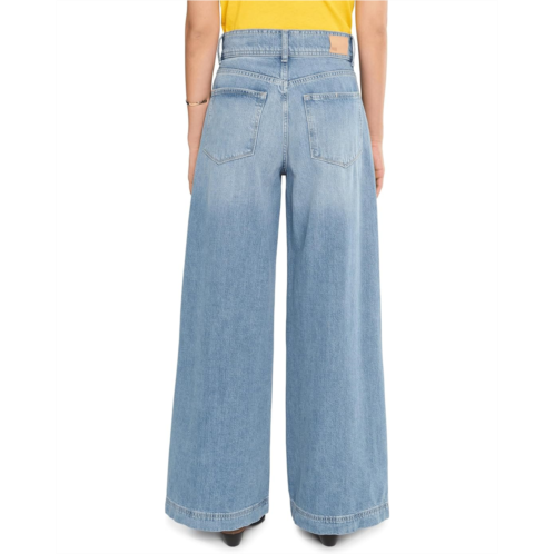 Accentuate a stylish statement look every time you wear the Paige Cameron Wide Leg 31' With Wide Waistband And Welt Pockets In Sunshine Jeans. The pull-on style jeans comes in a a high rise with a relaxed wide leg. This pair is crafted from from lightweight and drapey denim in a light vintage-inspired wash with a wide waistband with belt loops, double button closure, two welt stitch-through pockets on the front, and two patch pocket at the back.