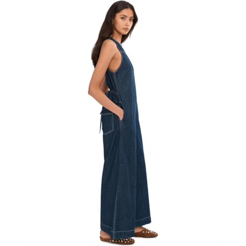Tradition meets the trend-setter in the Free People Do No Wrong Jumpsuit. Designed to turn everyday dressing into a statement, this sleeveless silhouette features a clean crew neckline and a sleek zip-fly with button closure for easy wear. The low-rise, slim flare fit elongates the frame, while the soft rigid denim delivers structure with just the right amount of comfort. An adjustable drawcord at the back waist lets you customize the fit, creating a flattering, cinched shape without sacrificing ease. Functional details like flap back pockets and a classic five-pocket design add utility-inspired charm. Finished with stonewashing and subtle fading, this jumpsuit channels lived-in cool with an exaggerated stacked hem for that effortlessly undone, fashion-forward finish.