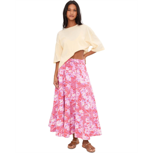 The Free People Zephyr Bustle Convertible skirt is designed with a flowing silhouette that can be worn as a maxi or adjusted into a midi length for styling flexibility. It is designed with an elasticized waist and adjustable drawstring closure.