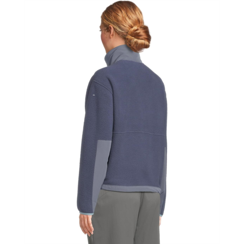 The North Face Yumiori Off Peak Full Zip Jacket is crafted from double-sided brushed fleece that offers long-lasting warmth and comfort. This fleece jacket features a closed-end VISLON front zipper with an auto-lock slider for easy wear. Its puller on the right-pocket zipper doubles as an emergency hair tie, while the reinforced mechanical-stretch binding on the front zipper and cuffs provides added comfort and durability. With its Circular design, it is thoughtfully designed to be disassembled and recycled by the brand at the end of its life into raw materials for a second generation of products. This zip-up jacket is styled with long sleeves, a two-layer stand collar with facing, an embroidered logo on the left chest, and an internal cinch cord with cord locks at the hem for adjustability.