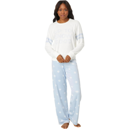 The silky soft P.J. Salvage Apres All Day Pant comes in a snow print and wide-leg silhouette. Features include a mid-rise, elasticized waistband with adjustable drawstring for easy wear.