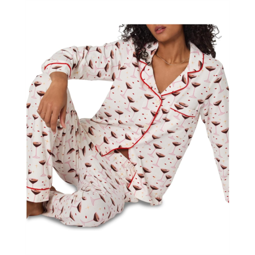 Step into serenity with every soft touch wearing the Bedhead PJs Long Sleeve Classic Cotton Knit Pajama Set. Featuring notch collar neckline, contrast knit piping inserted around the collar, self-sleeve bands with contrast knit piping, four-buttons down the center front, chest pocket, side hand pockets, fully elasticated waistband, and self-hem bands with contrast knit piping.